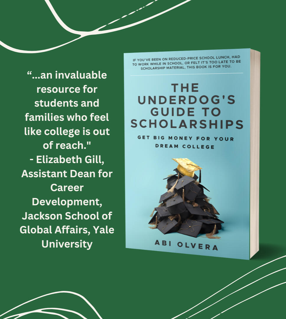 The Underdog's Guide to Scholarships is a step-by-step system for finding and winning need-based scholarships, tailored for high schoolers and college first-years.Buy on Amazon or independent book sellers.Contact me for speaking and workshops for students.